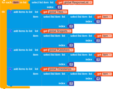 - In the JSON, which we converted to a list, we got two Items in that one is ‘Status’ & other is a list of all items. We need the List ‘Items’. In this list, we have one news article as one item, & we need data from all these items, so we will put the list items in a for loop ‘for each item in the list’