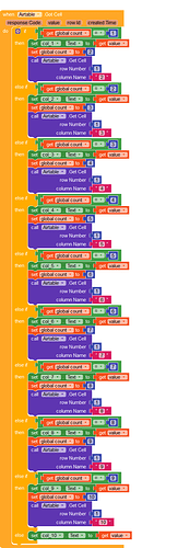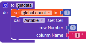 and when the cell is got this block will run here the count will be increased in order to get all cells one by one without using more than one component (spreadsheet)