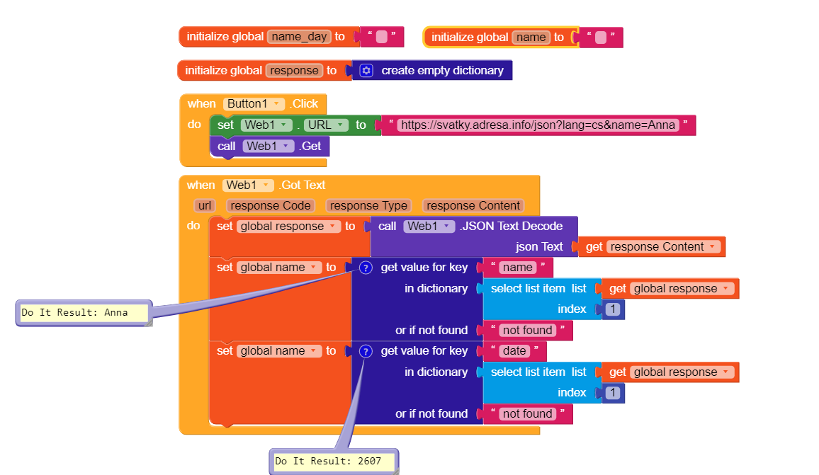 See how this api works here.You search either by name or by date. So you can use a join block and either a textbox to enter name or a date . You have to try it