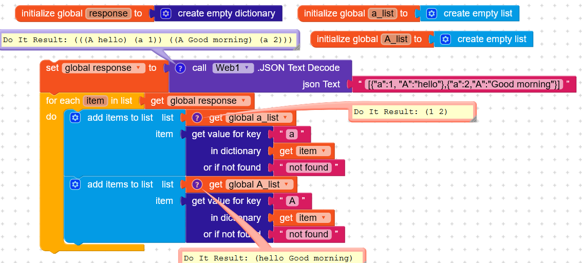The blocks I use to work with this is ..Actually your response is a list with 10 lists so depending what you what to do you customize your procedure