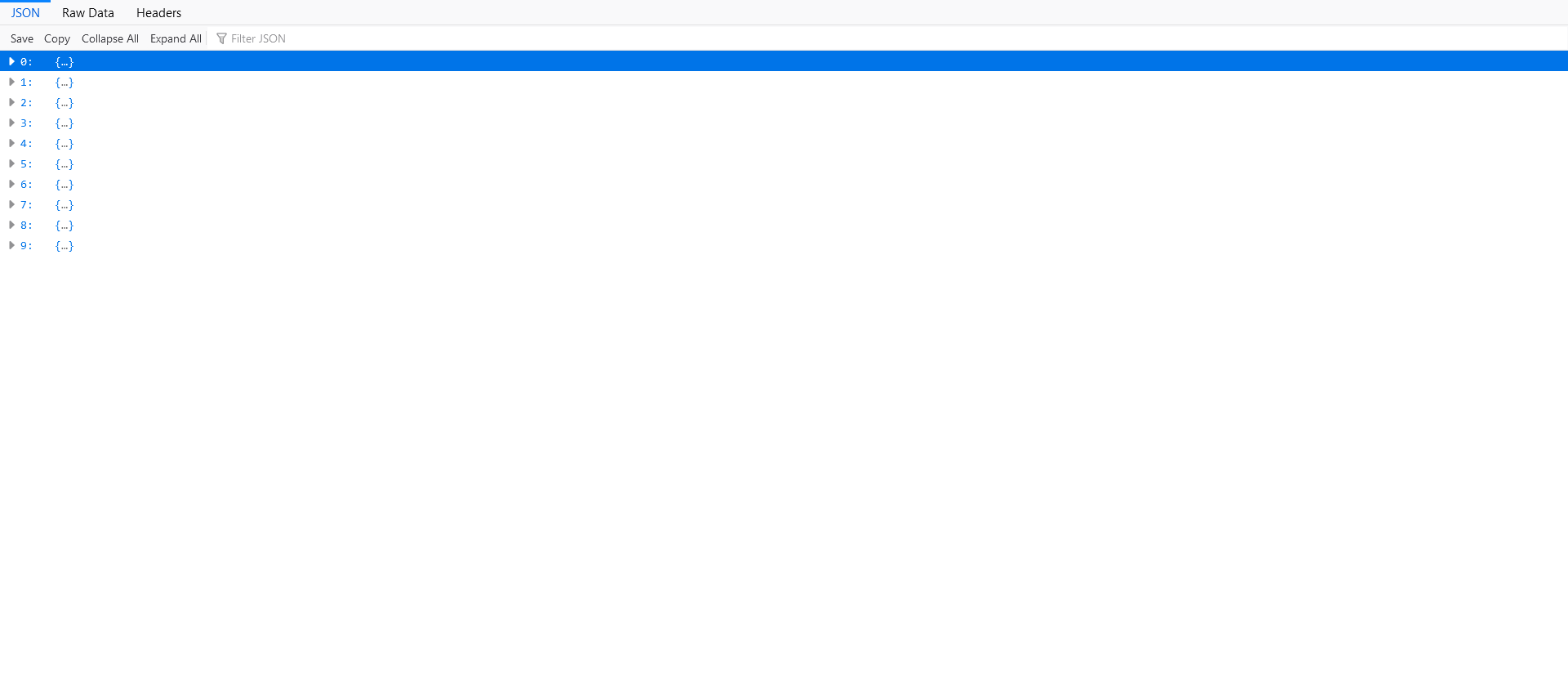Your json is an array with 10 objects so 0 in not a key but array’s index
