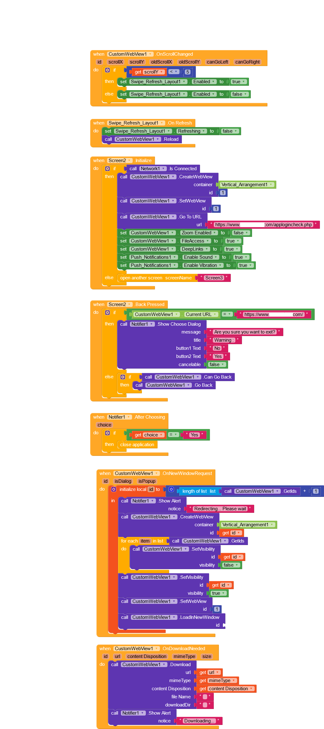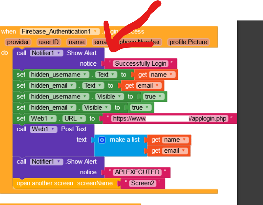 1**. Screen1** - using firebase authentication block and getting user login perfectly and passing the username & email to one API on my server (xyz.com/getuser.php) using POST method