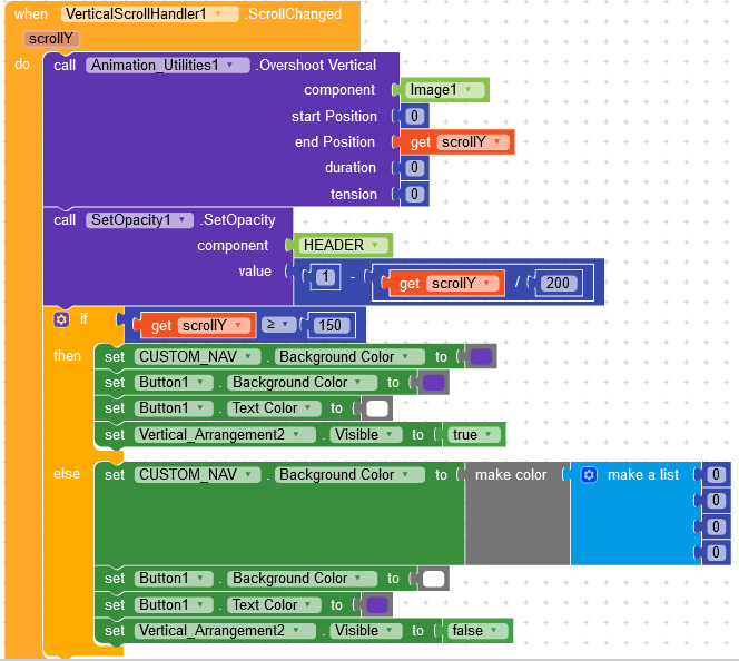 First thing first, make a design of your screen. First create a custom nav which will be fixed on the very top by using FloatingActionView extension and then inside the Vertical_Scroll_Arrangement make a header and then rest of the content will go down below.