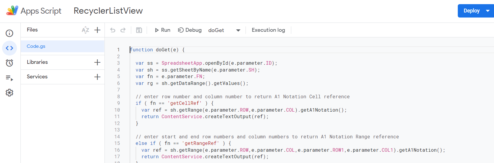 Today I will show you how to get data from gsheet, how to use a custom search and also how to add, delete or update records with RecyclerList extension by @zainulhassan . For this I used 🟩 [FREE] Google Sheets for AppInventor (replicant) using Google Apps Script - Extensions - MIT App Inventor Community by @TimAi2 and a google app script bound to my spreadsheet. I used Web App Script by @TimAi2