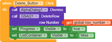 6. Delete row, all we need to know is row number which is saved from previous blocks