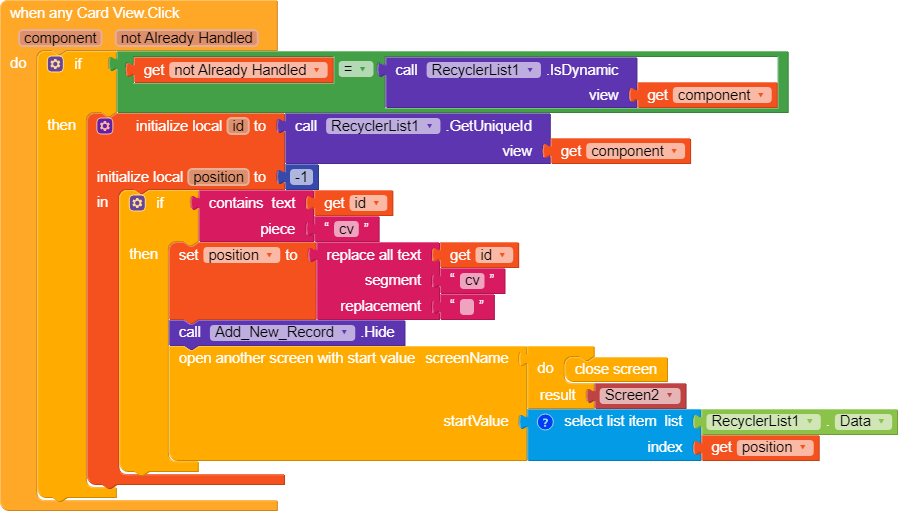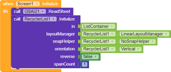 With all the above blocks we managed to get data from spreadsheet create our RecyclerList.