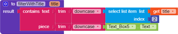 4. Now for the custom search part we need on text changed block and in order to to filter our data a procedure to use with ListUtils. Mine procedure searches column 2 of my database