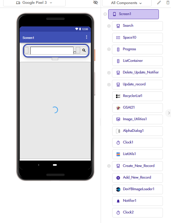 My UI is quite simple, a CV with a textbox used for custom search, a VA used as List Container, a VA used when data is loaded to show Circular Progress and 3 hidden CViews containing buttons and textboxes used as custom dialogs when add/update or delete a record needed