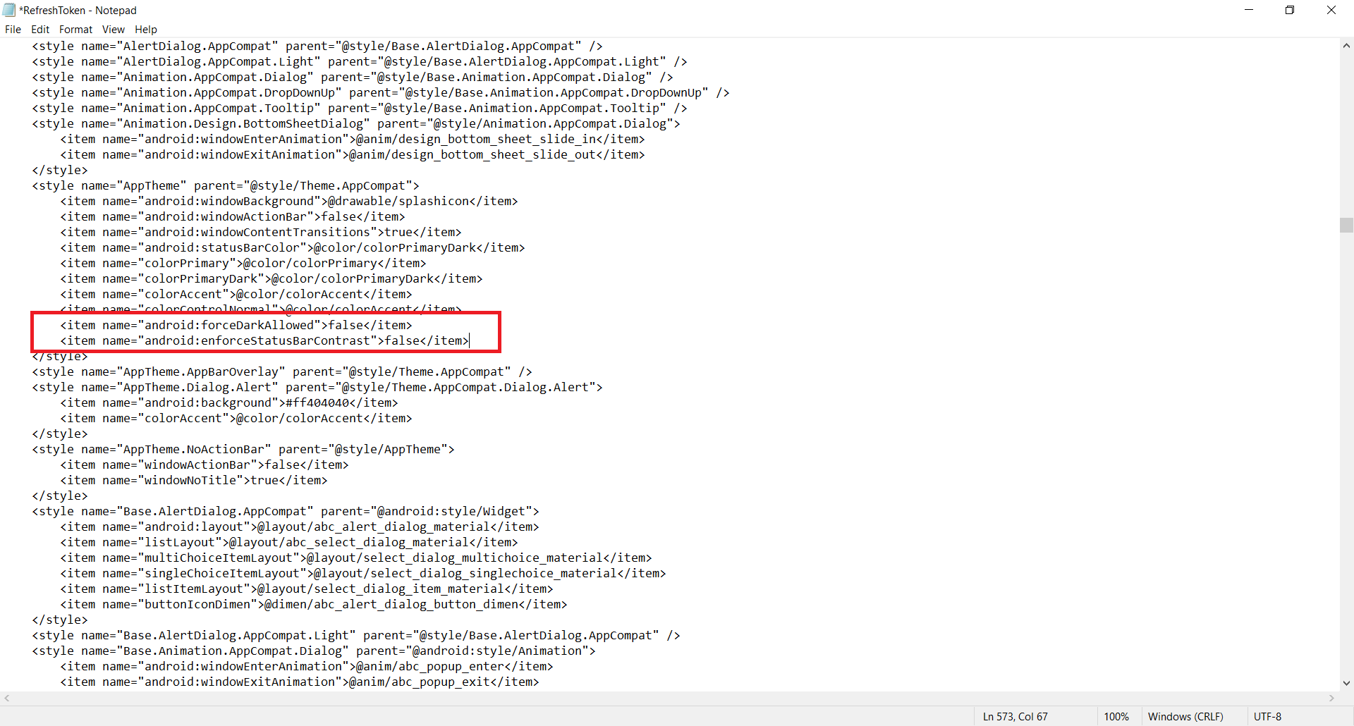 <item name="android:enforceNavigationBarContrast">false</item> This code and paste it in Style tag