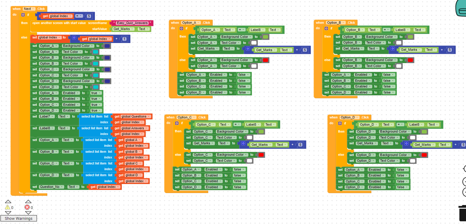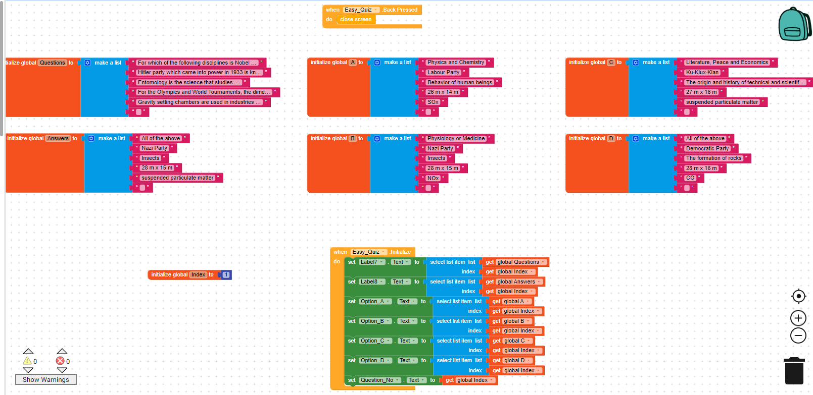 Here Is the Screenshots of My Blocks Please Tell me what can I do to make my question appear Randomly Each Time .
