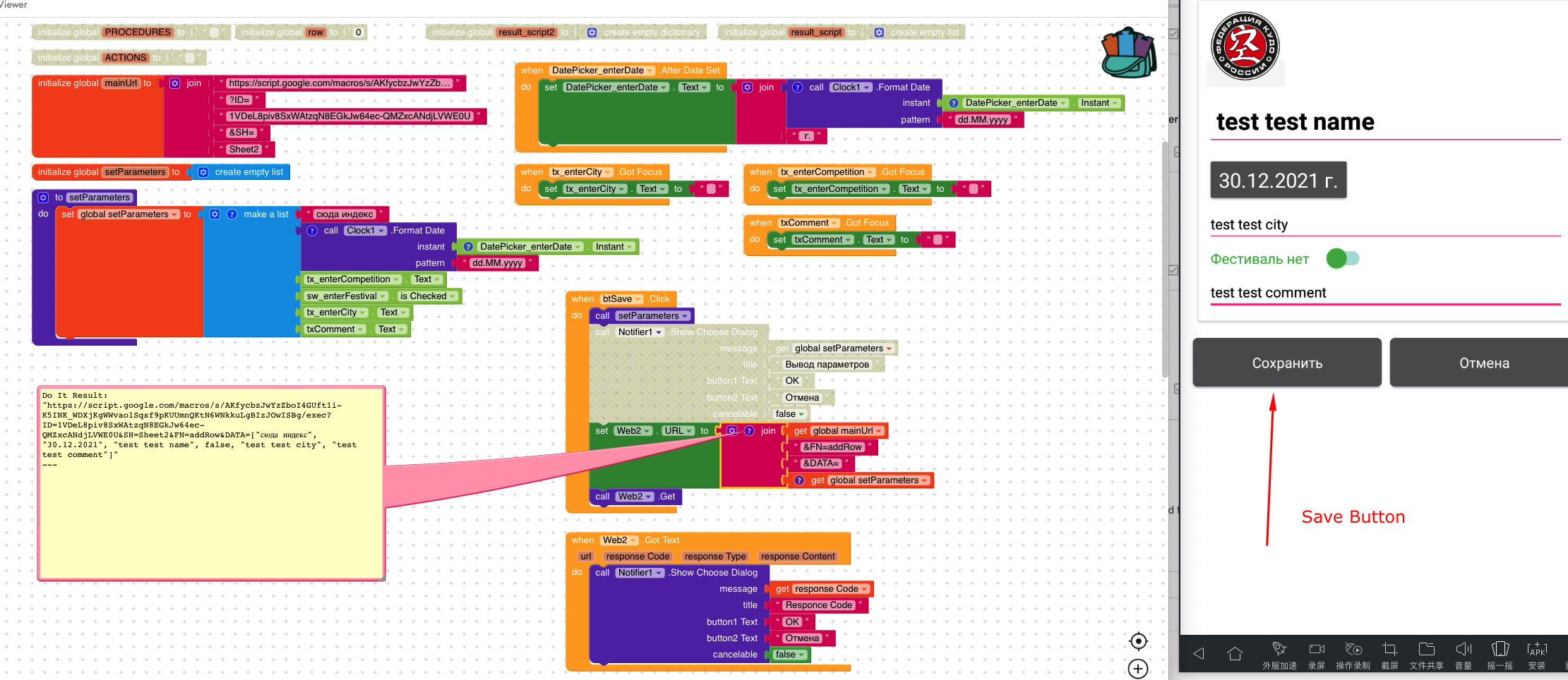 Sending the data’s to gsheet by a button click or by anyother mode?? Can you show your full block??