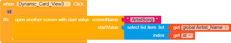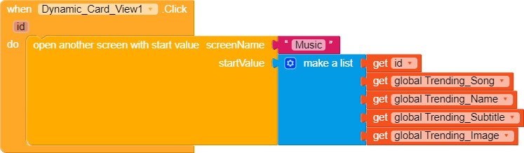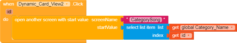 When you create card views, or labels or … in each horizontal scroll arrangement use a different prefix in id . Then use any cardview click block and if dynamic component contains that special prefix then open specific screen