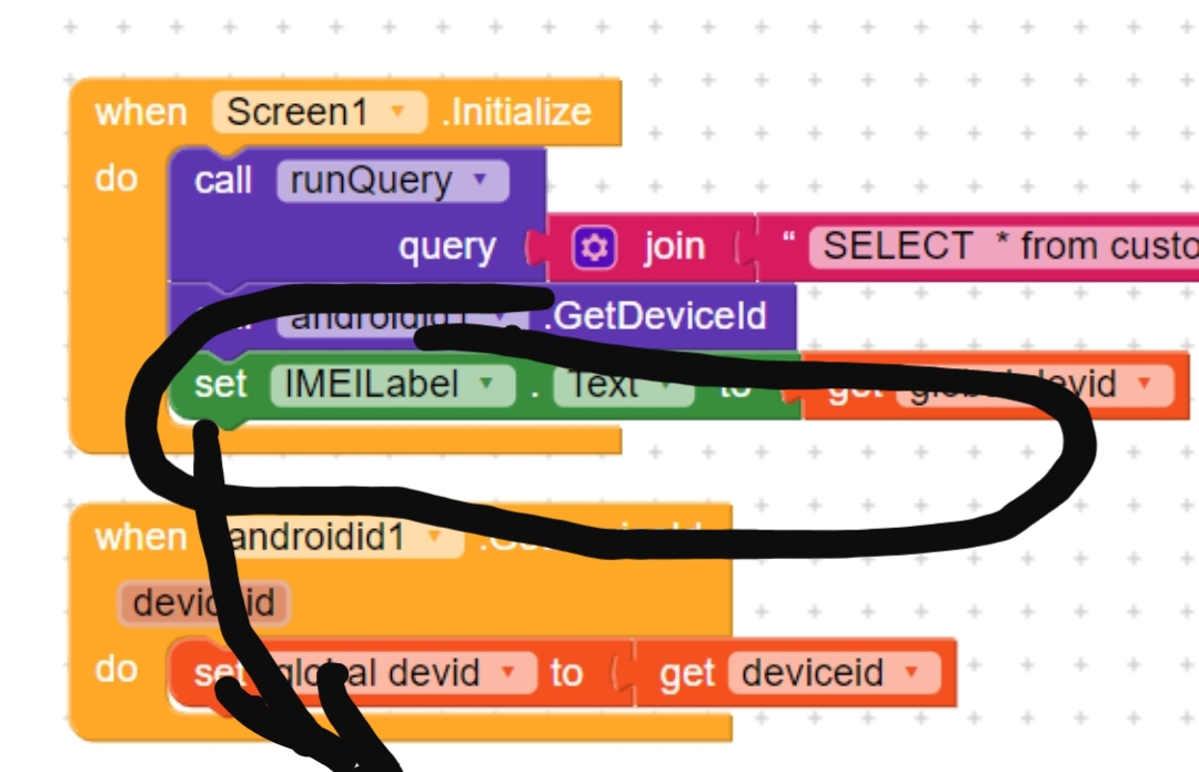 Setting the label inside the When androidid1.GotDeviceid event is triggered