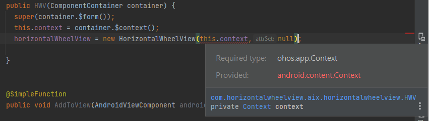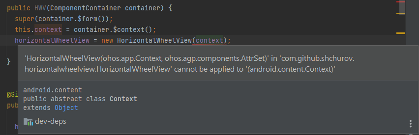 'HorizontalWheelView(ohos.app.Context, ohos.agp.components.AttrSet)' in 'com.github.shchurov.horizontalwheelview.HorizontalWheelView' cannot be applied to '(android.content.Context)'