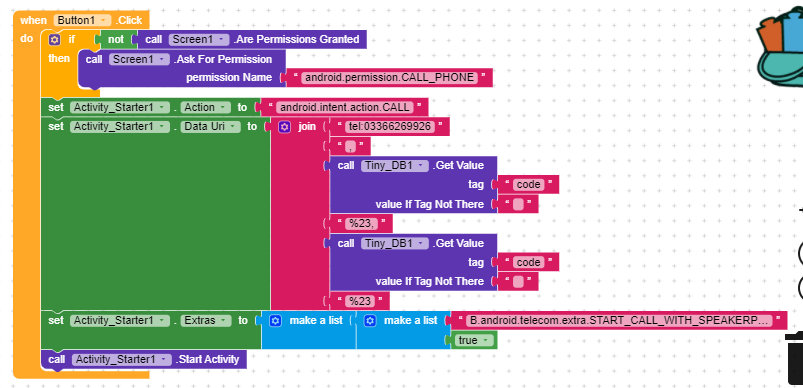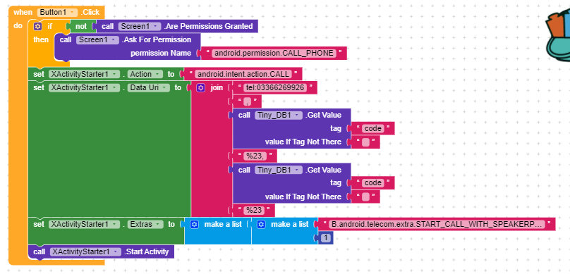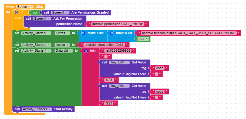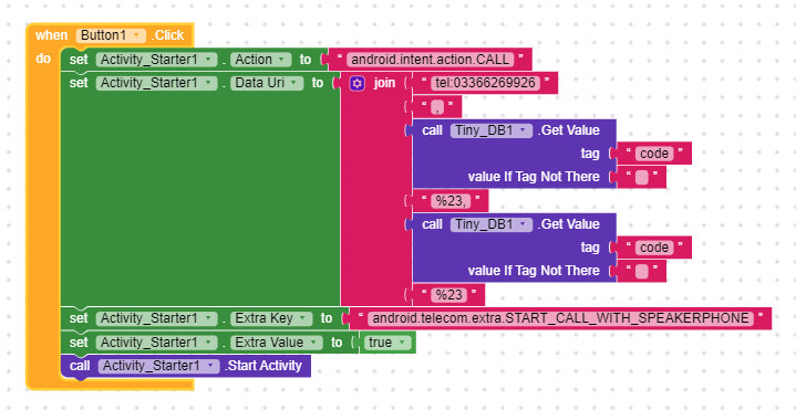 I want to initiate a Phone Call in Loud Speaker, My blocks are in below,