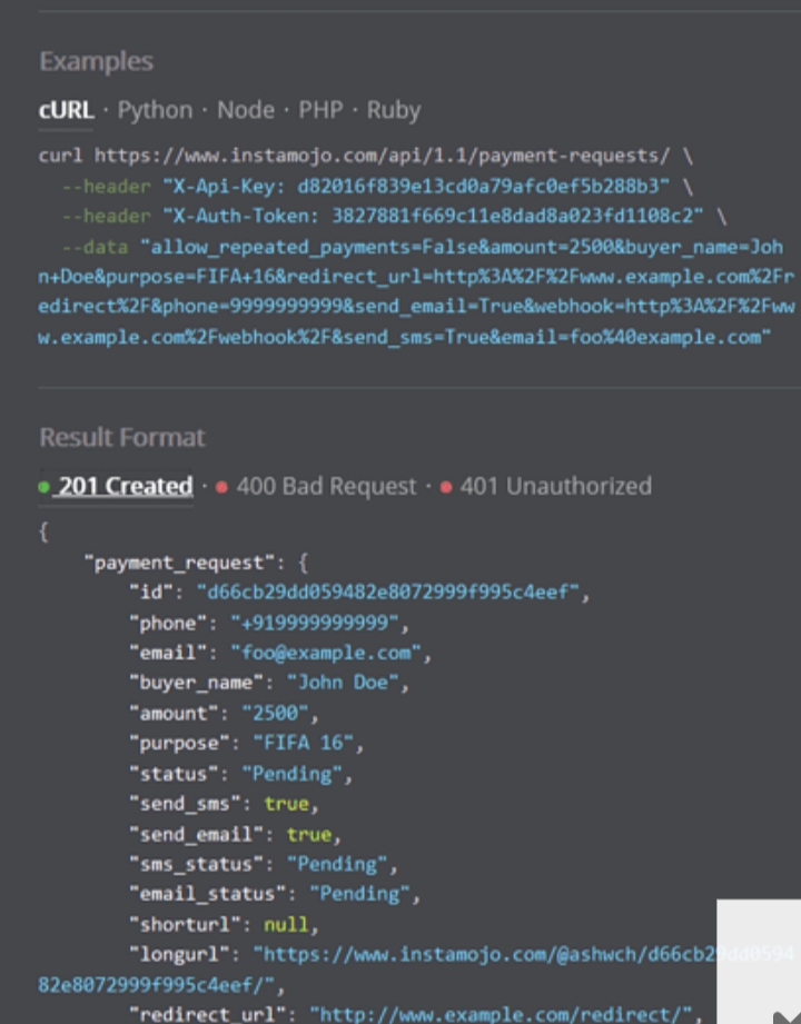 *curl https://www.instamojo.com/api/1.1/payment-requests/ *