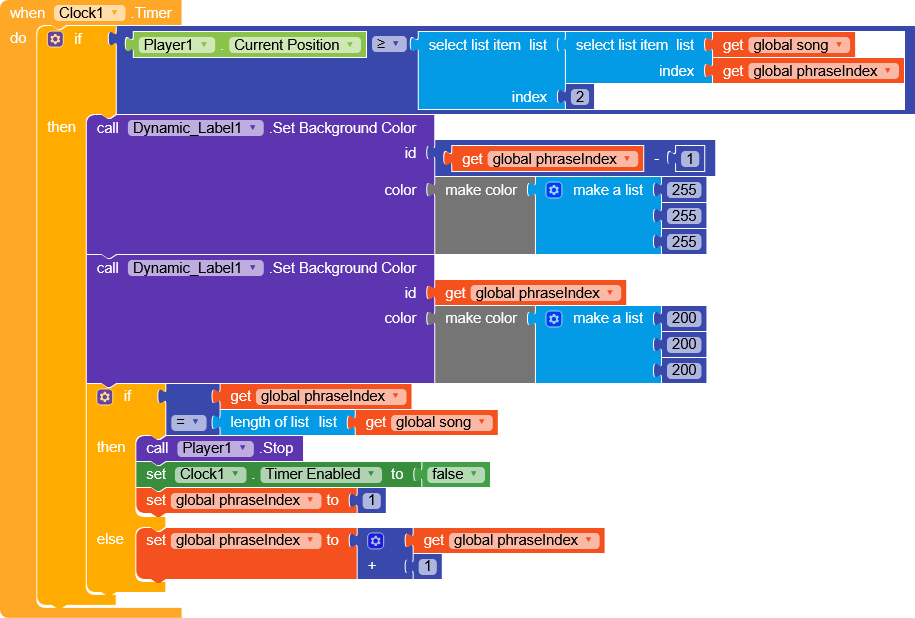 I want to make a karaoke like app, I have problem synchronizing text with corresponding sound. First text shows in first loop. highliting text doesn’t not work in second loop. also while playing sound, stoping or pausing player doesn’t work. I show you block I have made for test.
