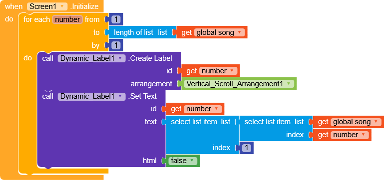 In Screen.Initialize , I generate simple labels.