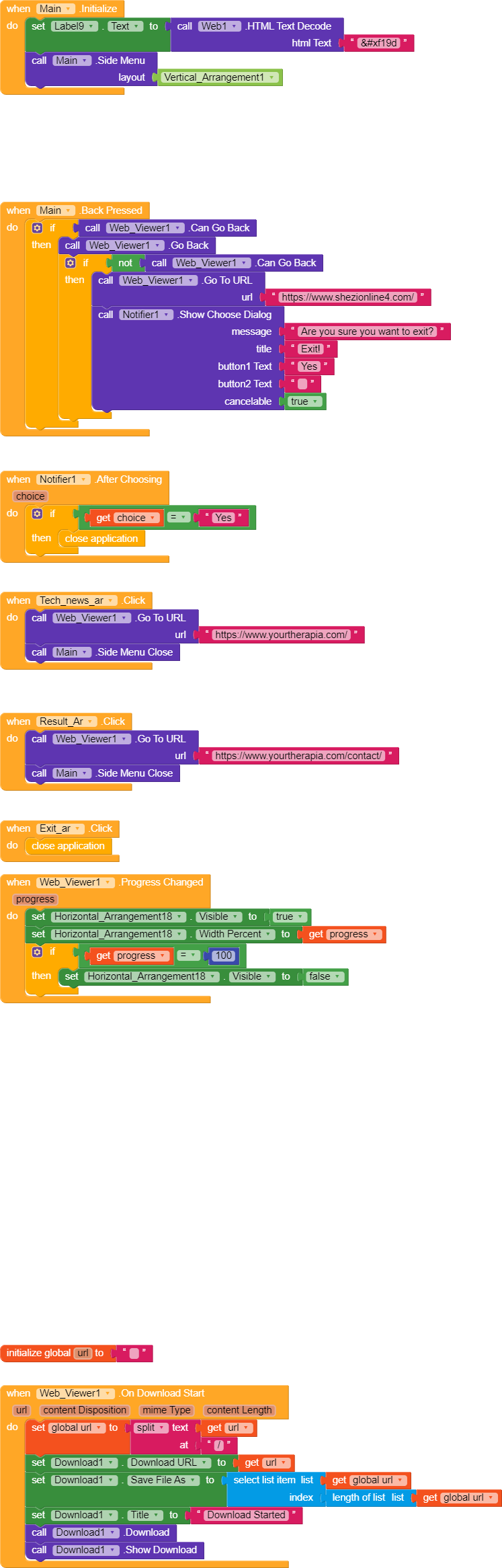 To get an image of your blocks, right click in the Blocks Editor and select “Download Blocks as Image”. You might want to use an image editor to crop etc. if required. Then post it here in the community.