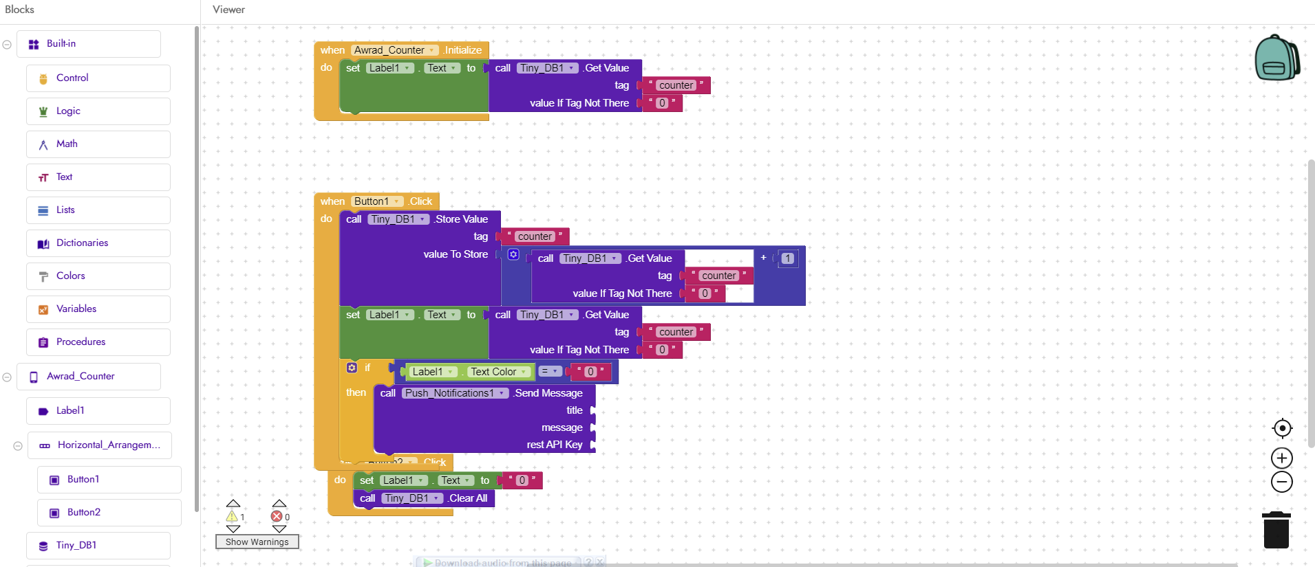I have figured out almost everything, but I can find a way to send notifications to users when the total number in the label reaches 100.