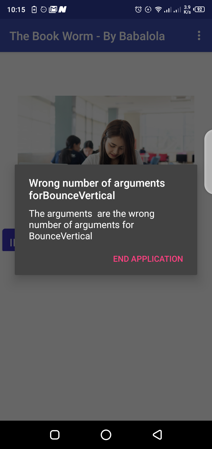 Hi Geniuses, I’m a beginner on Kodular. The issue I’m facing now is that. Whenever my app’s first screen initializes, A pop-up dialogue appears, stating: WRONG NUMBER FOR BOUNCE VERTICAL…Pls, how can I fix this?.. help with ur suggestions…I’m to submit this app for a project in school!!![]()