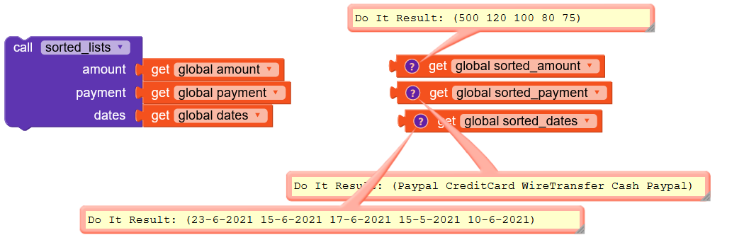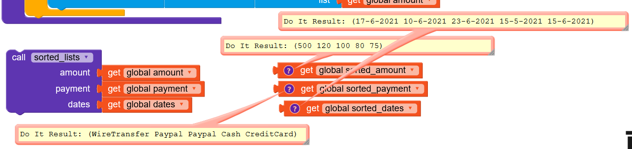 The above procedure you have to do it twice cause you have 3 lists and you want to sort all of them according to the first one. See example