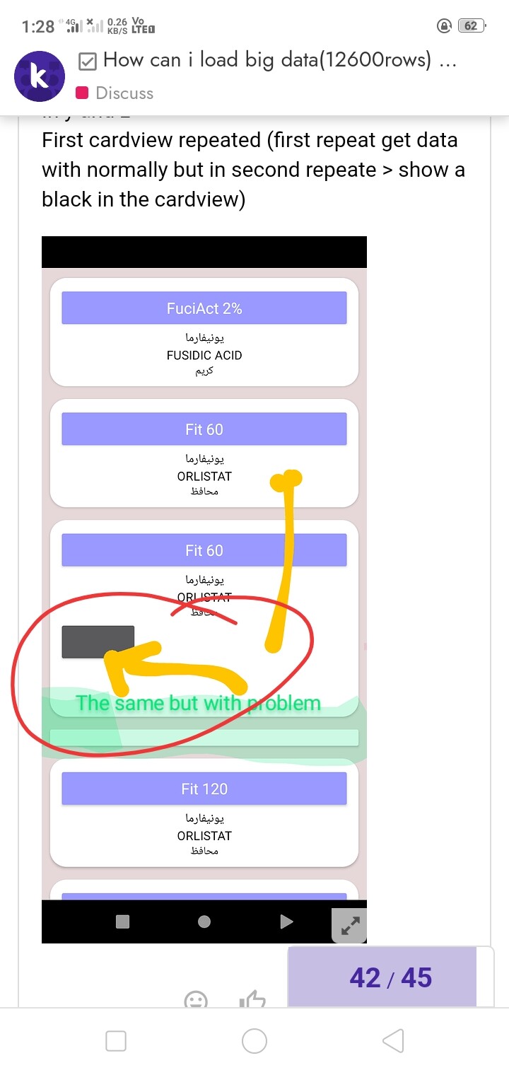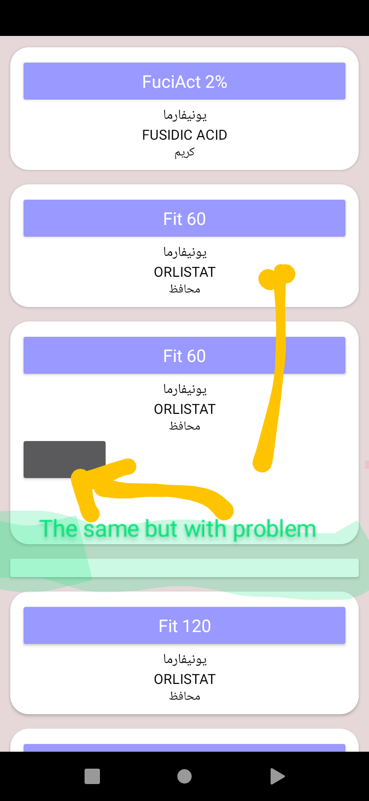 No, I mean at the beginning of get all rows , the the data is getting done normally, but after a few seconds to load the rest of the data gradually, the first cardview is loading successfully, but then the first cardview is repeated with this black piece inside it and then the rest of the data is getting normally