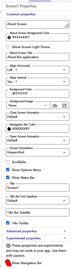 I’ve figured it out. It’s a simple solution. In the program, choose ‘When Screen1 Initialize’ and insert ‘Set Screen1 Show Navigation Bar to false’. And that’s it. ![]()