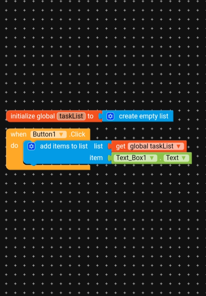 According to the blocks , everytime when the user clicks button, the text in textbox will get added to task list and thus creating a list as per user. Then after, you can either save that list in any storage or continue with your further app flow