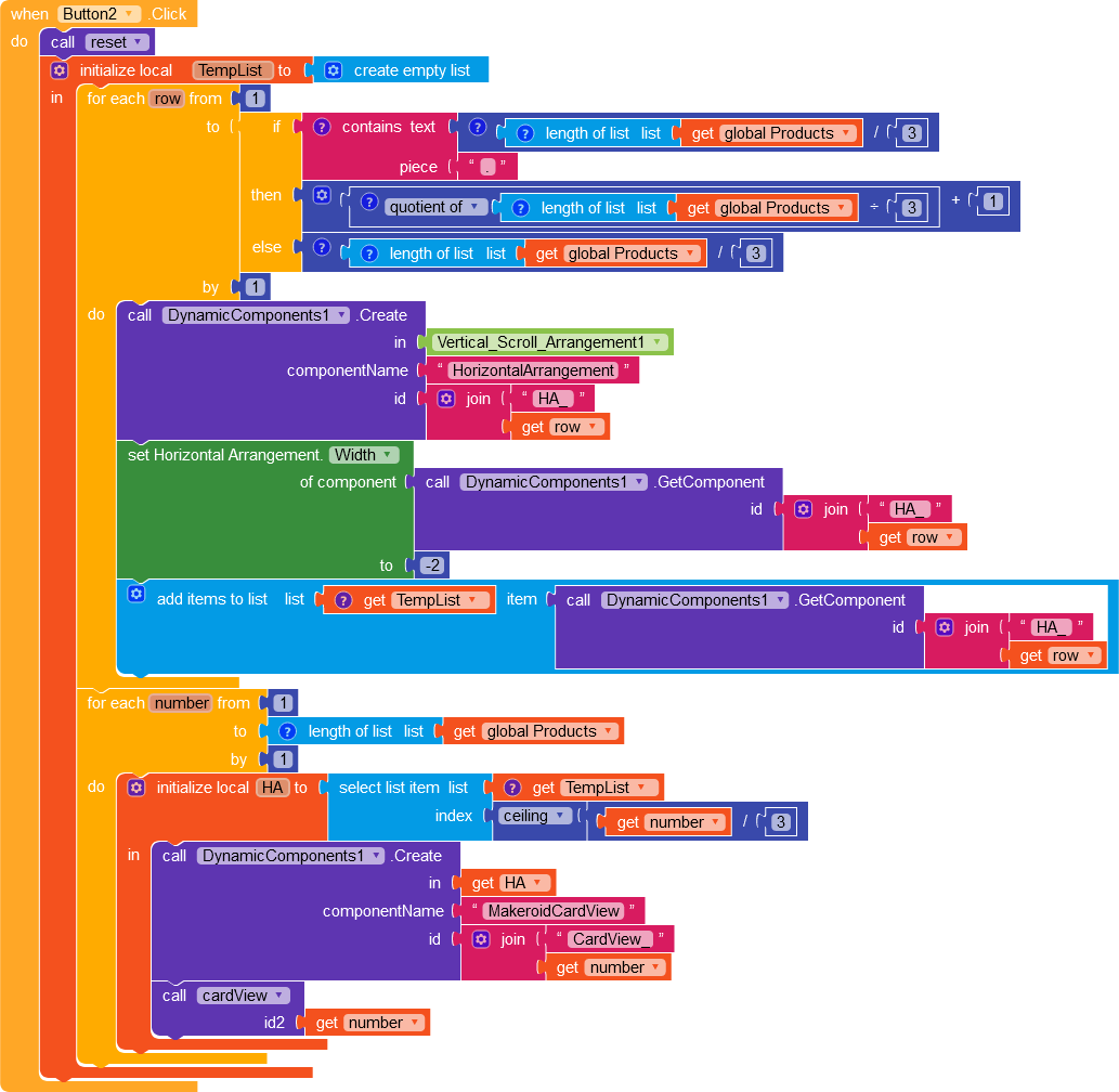 i have tried with this code, and found working as .. based on the length of the list it rearrange, but width was fixed as -2 so it not look good .. see my blocks and app response