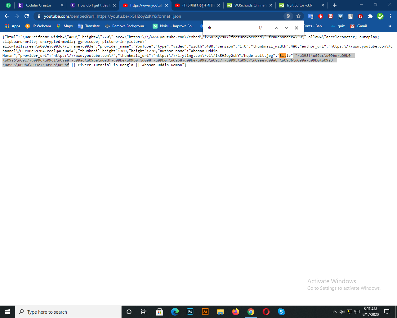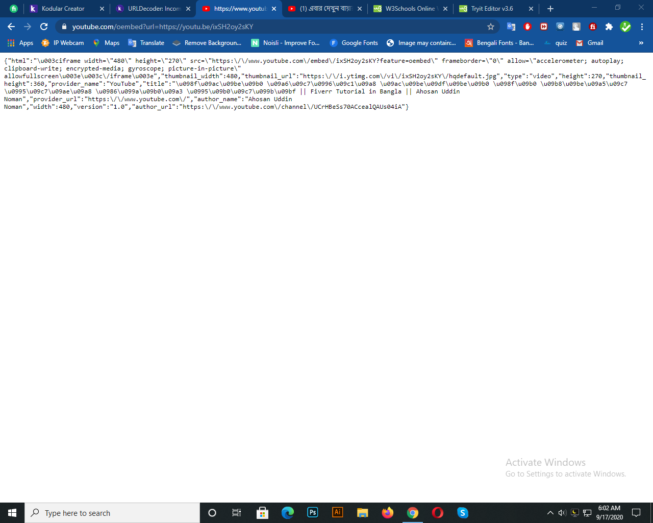 As you see it’s a lot of info about the video ( title , auther,autherchannel) ,etc..But it’s in the json format you will need to decode it.