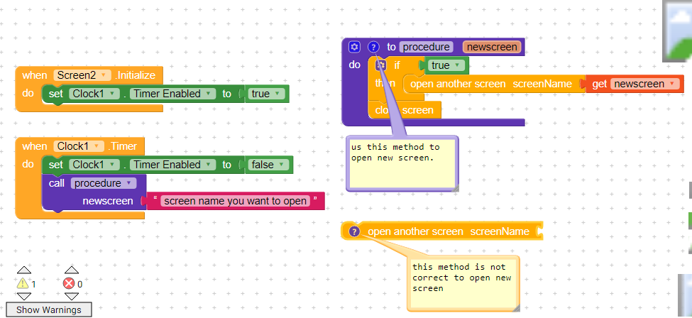 i want to put a time delay on this screen1 for 3 to 4 sec not sure i i have the blocks correct