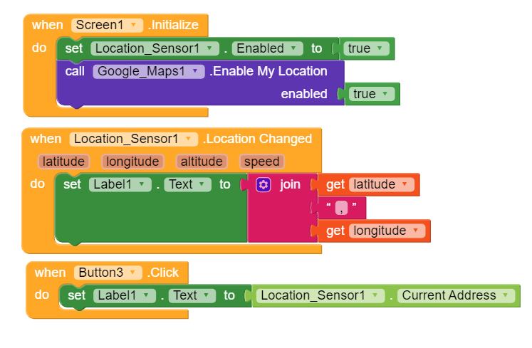 I want to get adreess from location sensor with get current adress in kodular. can anyone give me blocks coding…