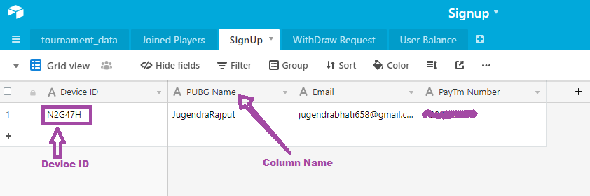 I’m logging user by there Device ID. I have only “User Name” Column Name. Tell me how I can Load User Data from AirTable without Row No.