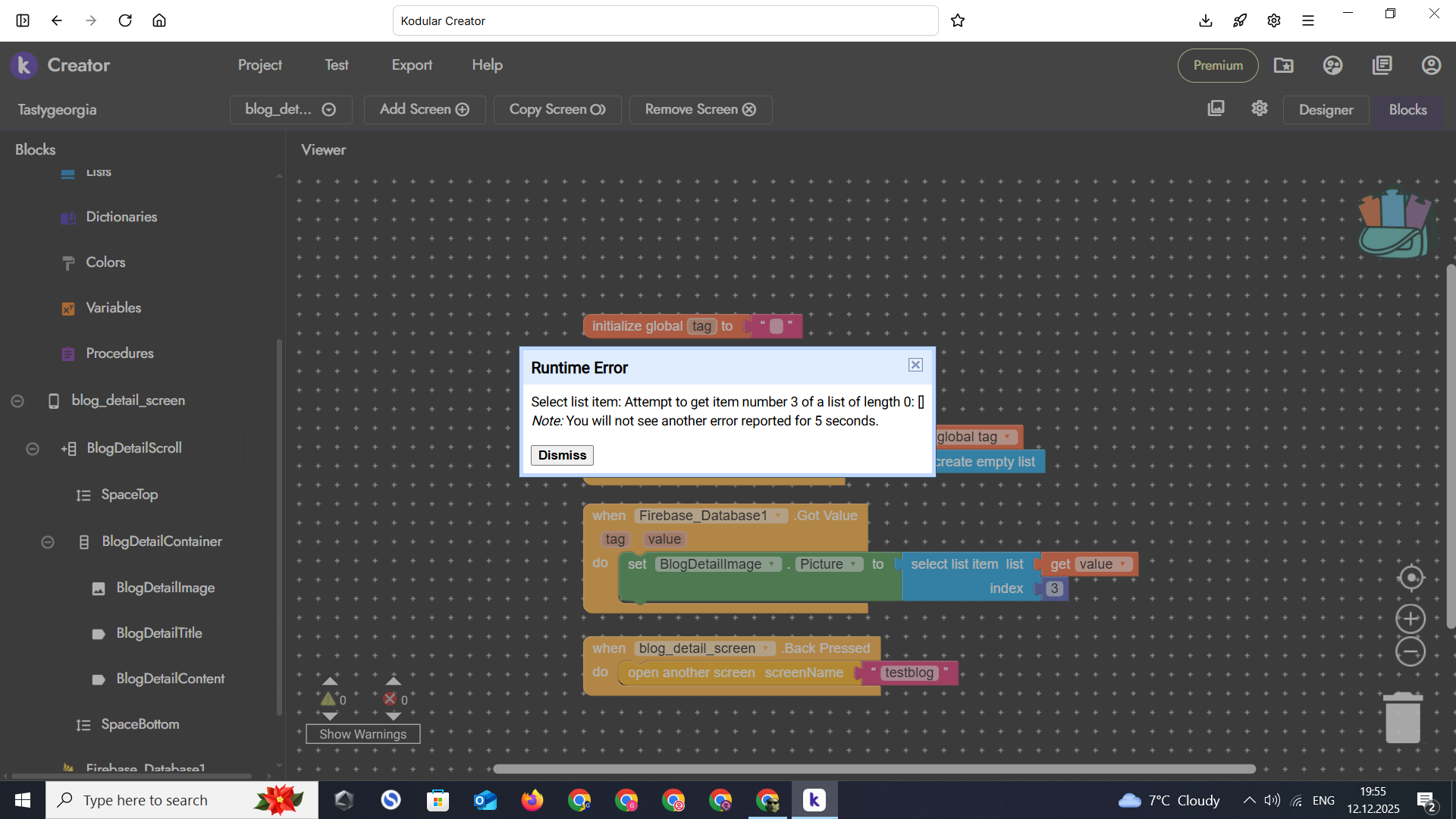 I want to get posts from the database, which works and all posts are visible on the screen through the listview. But now I want to click on each post in the listview and open it in a completely new screen. I have created the screen and I think I have the blocks correctly, but it still gives an error, can you help me? Explain it simply and clearly, I don’t have much knowledge in kodular yet. Thanks