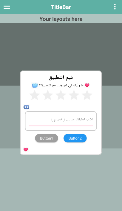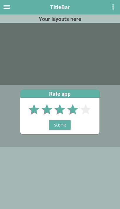 In Layout you will put all your vertical arrangements (leaving the TitleBar out), and in Dialog_Main you will keep only VA_Dialog_MessageDialog, customizing it with the RatingBar.
