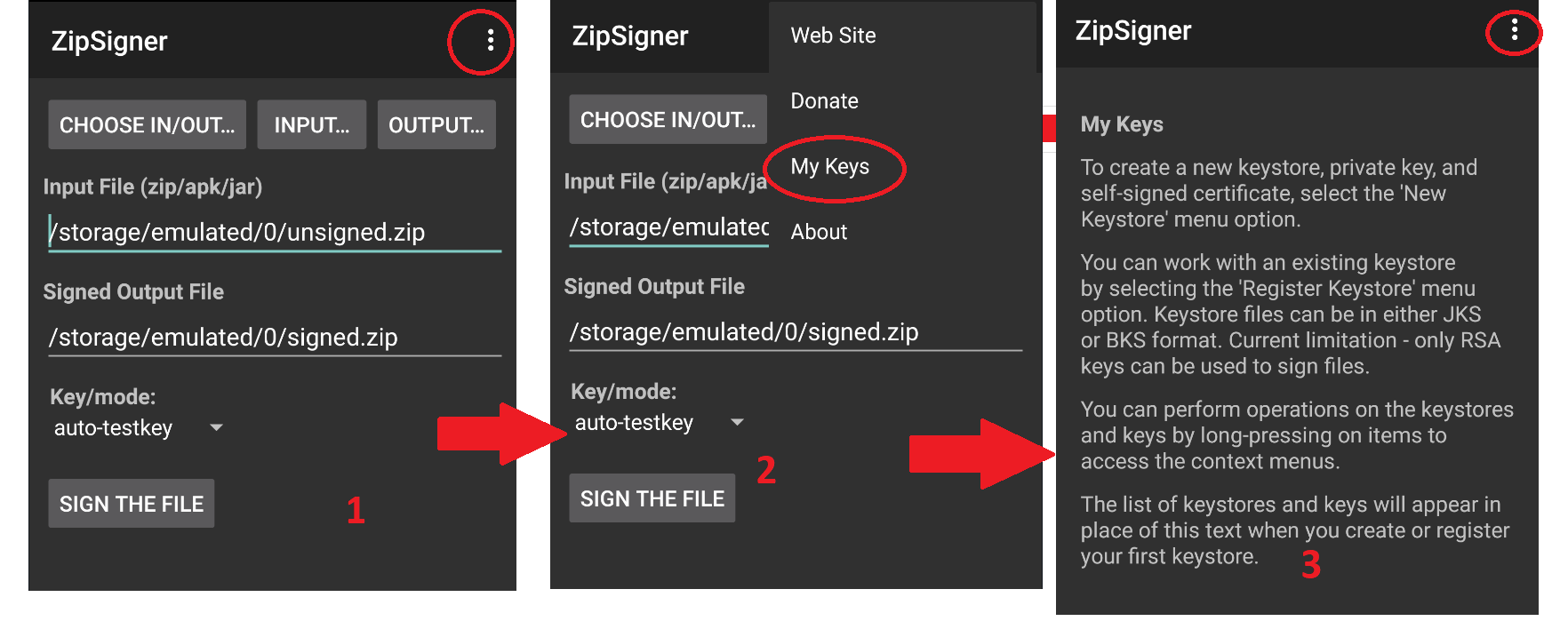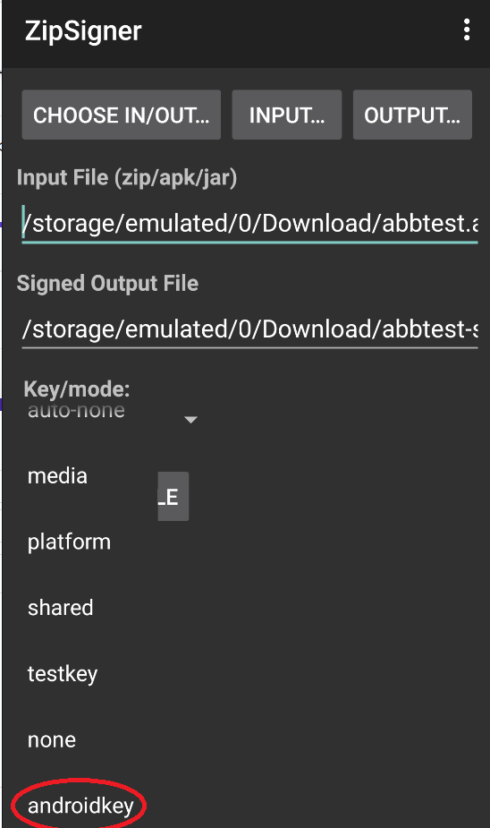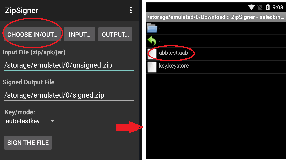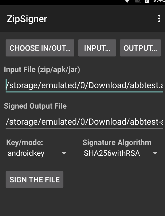 now chose the “SHA256withRSA” and just press “Sign the file”