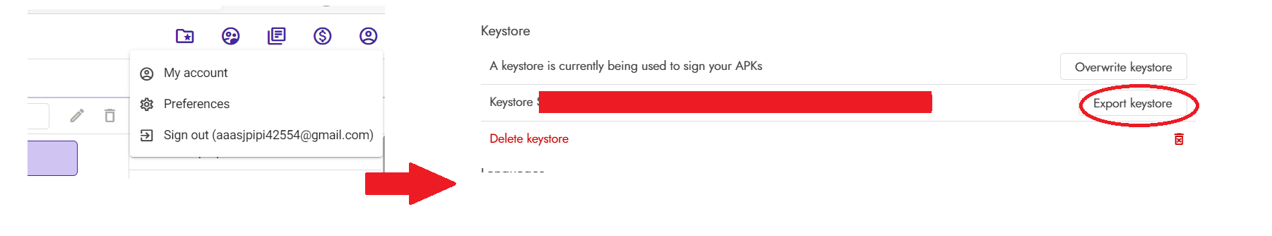 First download the keystore “android.keystore” from your Kodular account and rename it to: “android.ks”
