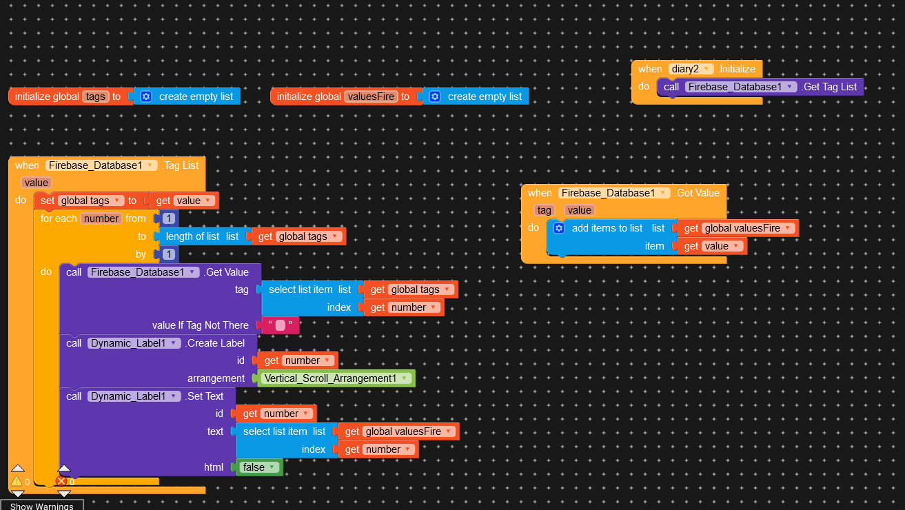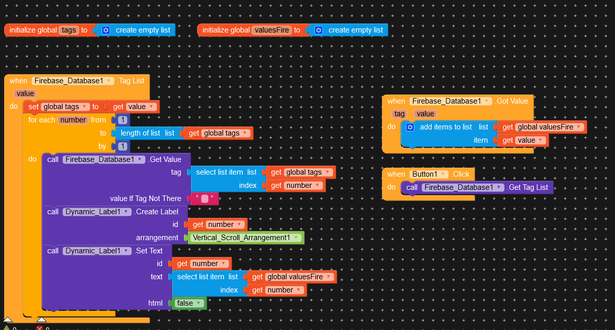 My list is of all the tags in firedb and so It will get the value of the first tag and then it will add that value to the other list and then repeat for all tags