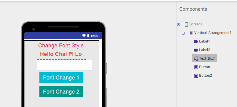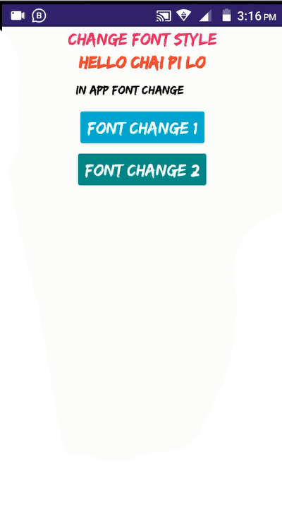 Step 1 ) Design Your App & Design Font Change System. You can Use Buttons, Radio Button, List View, Spinner Etc. For Make Font Change System. ( I use Two Button)