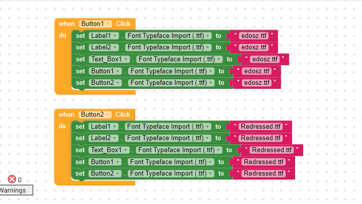 I actually used this in one on my app and since there were lot of fonts a just made a procedure called change font where there were all the components that needed to change to a variable “font” so that i could just call many time and just add the font name