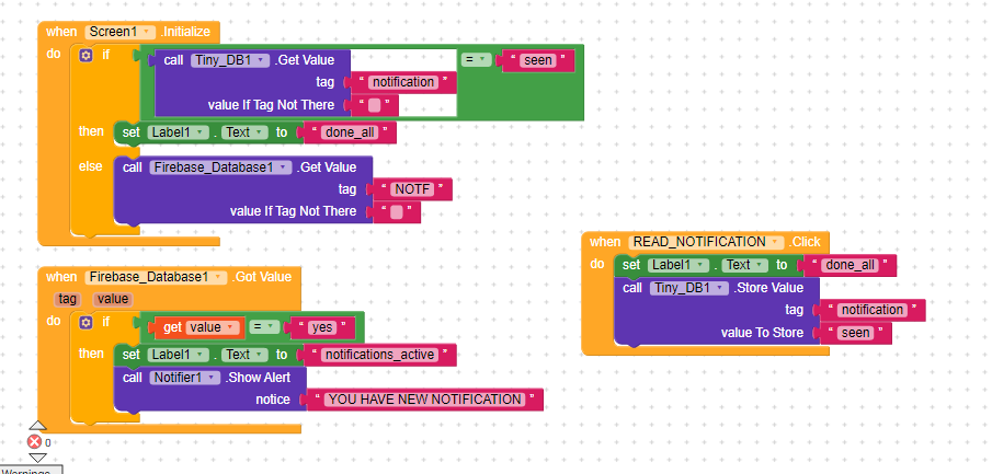 Here i used firebase, if firebase tag value = yes then it will show NOTIFICATION ICON otherwise it will show CHECK ICON and TinyDB will store value that user has seen message right ?