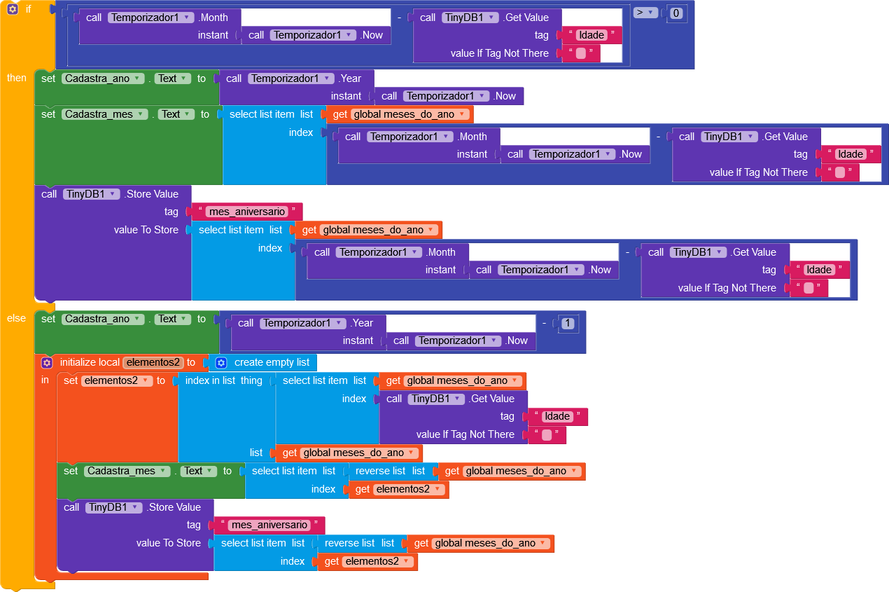 The person select how many months the baby have, like 8 months, the code, calc the period, when click on label, people select on na radio a number 1 —>11 , when select save the number on tinydb…