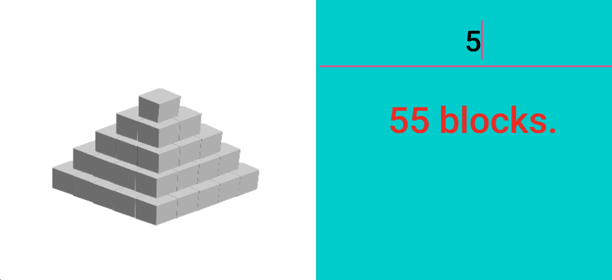 In this image have a yarn pyramid stock. I need to calculate all yarn package daily. Which need more time but I want to make calculator type app where I will enter 3 value in 3 textbox that’s I marked on this image and app give me the result how many yarn package have on this pyramid.