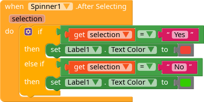 when the user pick no i want the text lable to change colour to red. I could not figured out how to do this. Can someone tell me how to go about with this?