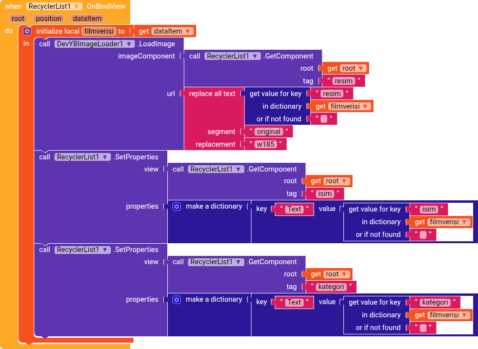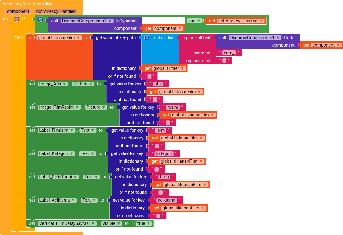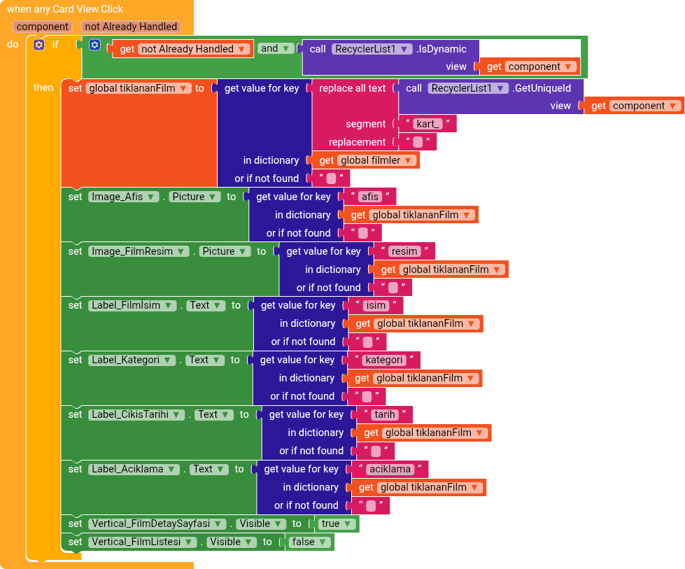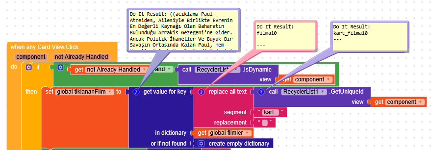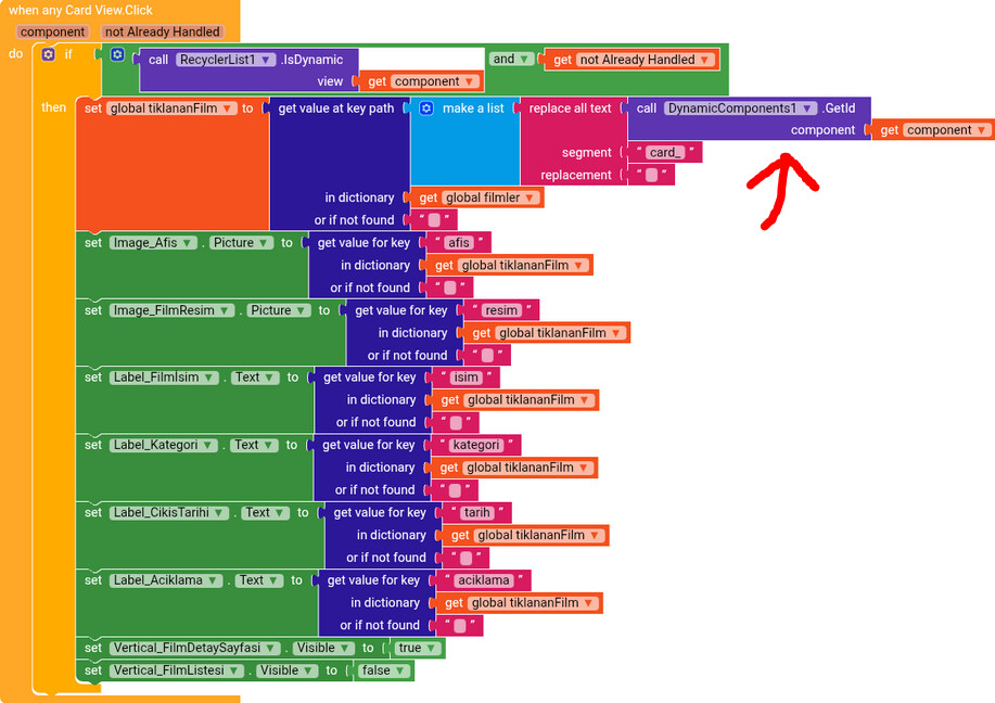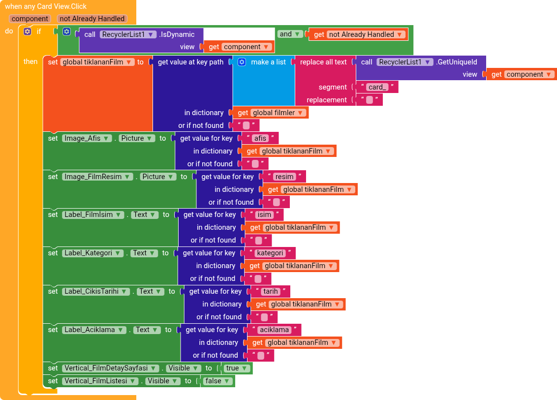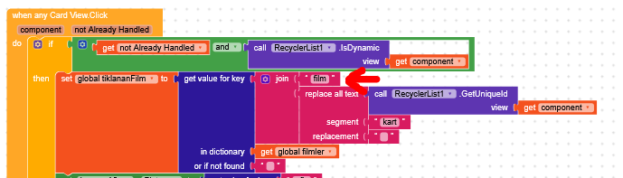 Then, when a CardView is clicked, you remove "kart" from the uniqueId, ending up with 1, 2, 3, and then you add the prefix "film", getting film1, film2.