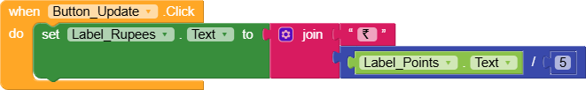 I need help to add this auto conversion system in my app β so that points are automatically converted into rupees and shown in a label or text box.