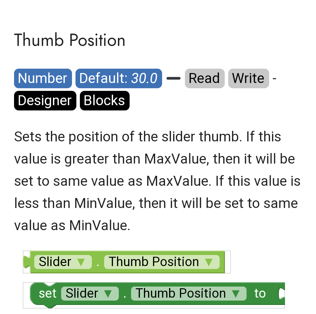 Set the min. Value to 1/0 and set the max. Value to 100 You get the value the user slides at using the Thumb position property: