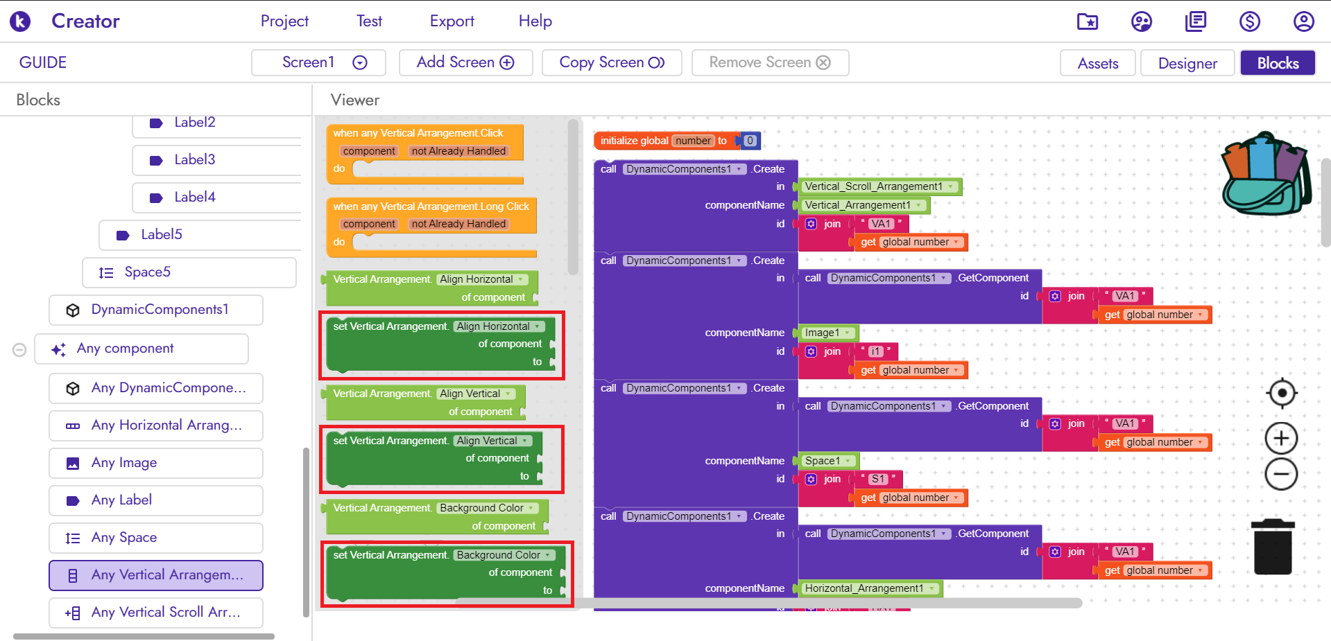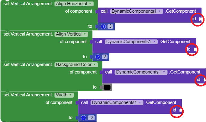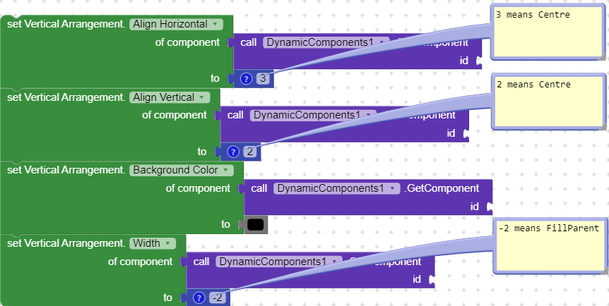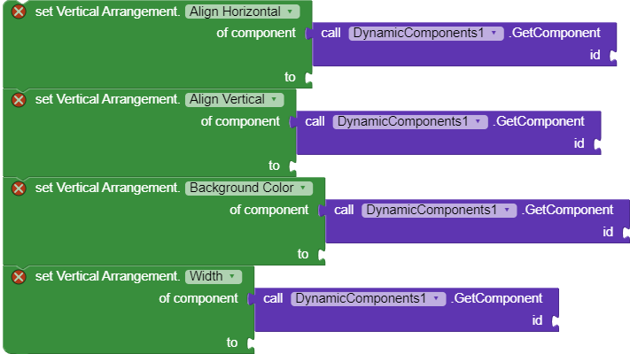 Now Drag Property Setter Blocks to the Screen to Set the Properties of Component.