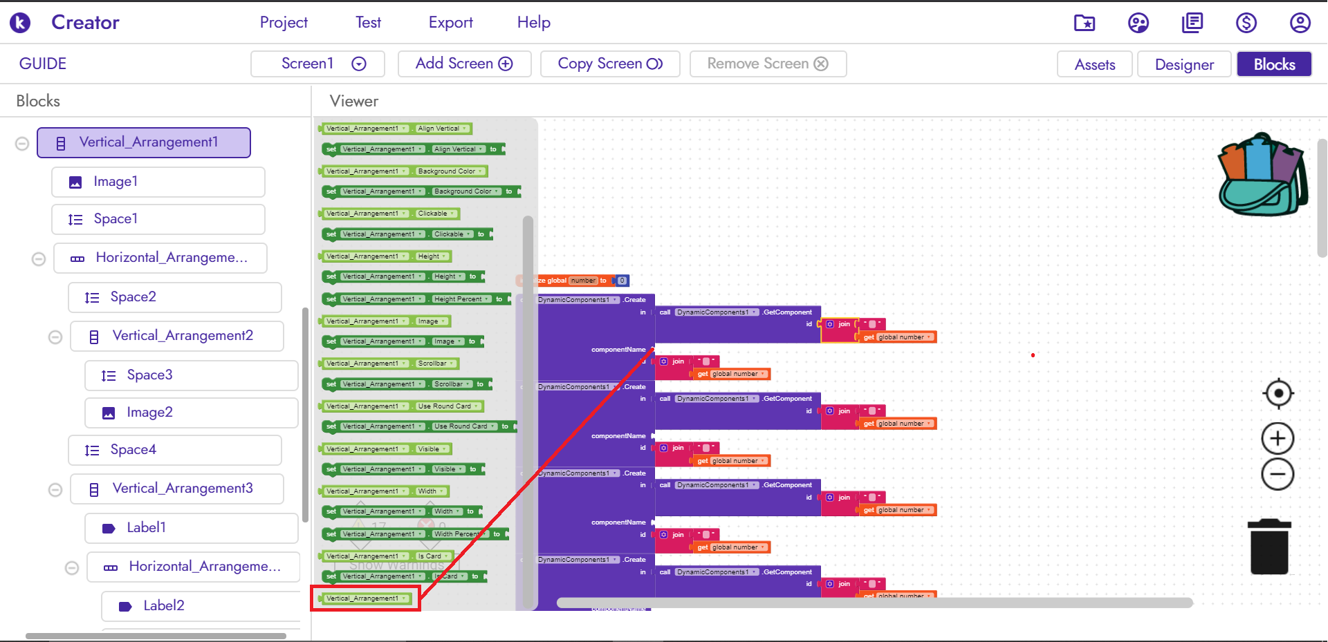 Is Inside VerticalArrangement1, Shown Under Red Box.